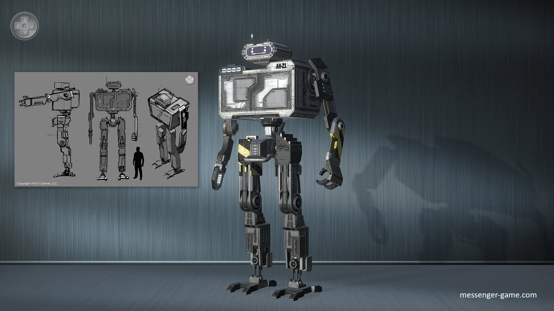 The Autonomous Huminoid - Zone 1 or (Ozzy) as his engineers lovingly refer to him is the main character in Messenger which is headed to PC's in 2018. In the entry below, we shared some of the initial sketches and references for Ozzy. After working with our amazing concept artist Abe Lee, we finally evolved the sketches into this incredible robot.
